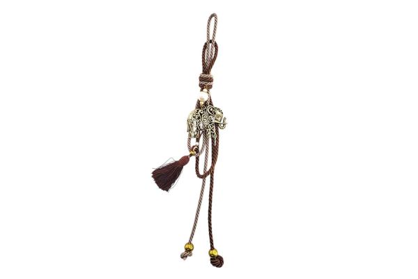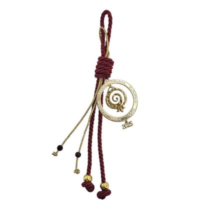 Ένα εντυπωσιακό κρεμαστό γούρι που συνδυάζει μεταλλικά στοιχεία σε χρυσή απόχρωση με σχοινί σε ζεστούς γήινους τόνους. Οι λεπτομέρειες περιλαμβάνουν μοτίβα με σύμβολα ευτυχίας και ευημερίας, καθώς και χάντρες που προσδίδουν διακριτική λάμψη. Ιδανικό για να διακοσμήσει το σπίτι ή το γραφείο σας, φέρνοντας τύχη και θετική ενέργεια στον χώρο. Ένα ιδιαίτερο δώρο για το νέο έτος, γεμάτο μηνύματα αγάπης, ελπίδας και αισιοδοξίας!
