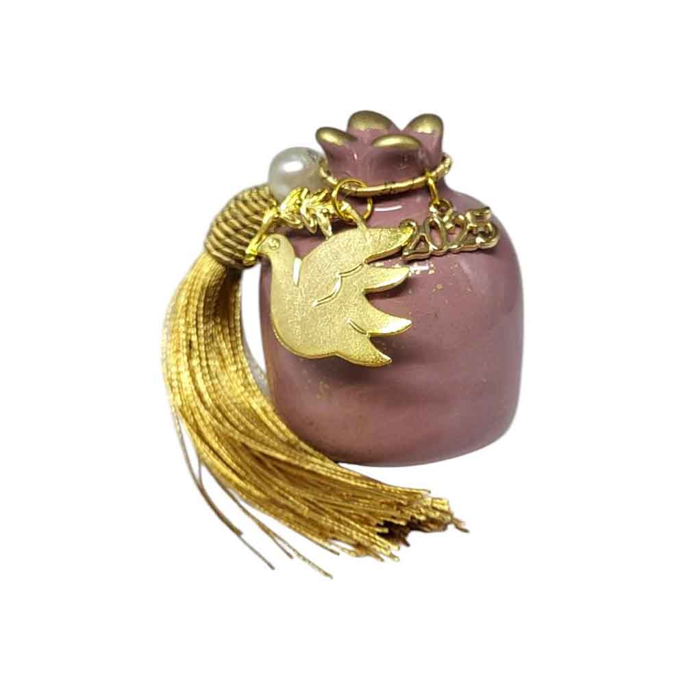 Χειροποίητο Κεραμικό Ρόδι Ροζ Γυαλιστερό 4.5x7cm (426)
