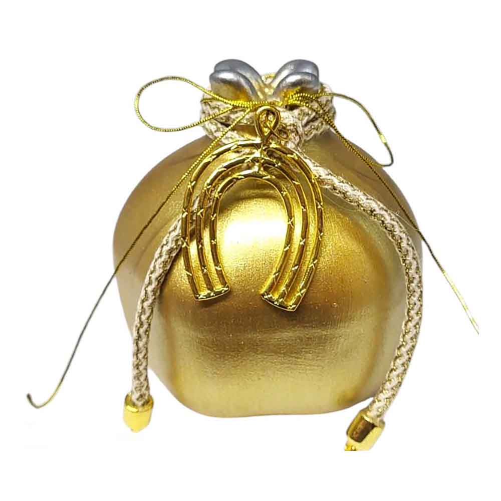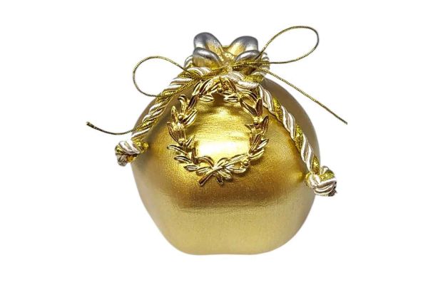 Αυτό το κεραμικό ρόδι, με ματ επιφάνειά του σε χρυσόί χρώμα , αποπνέει κομψότητα και φινέτσα. Οι χρυσές λεπτομέρειες στο επάνω μέρος και οι περίτεχνες διακοσμήσεις, όπως το μεταλλικό στοιχείο με το πέταλλο , το καθιστούν ιδανικό για δώρο ή διακοσμητικό στοιχείο. Είναι ένα ξεχωριστό κομμάτι που συνδυάζει την παραδοσιακή έννοια της καλής τύχης με μοντέρνα αισθητική.