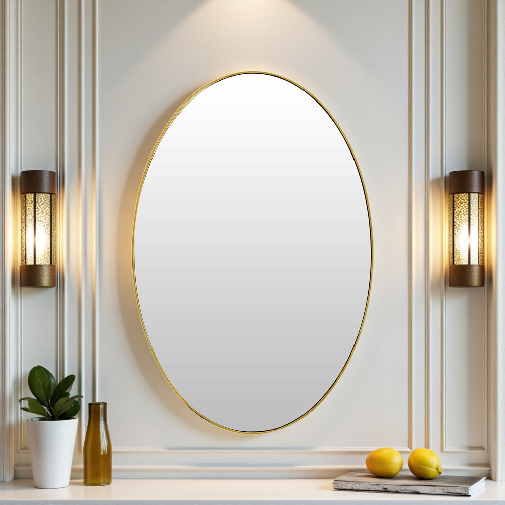 Ο καθρέπτης τοίχου Eggo της Inart ξεχωρίζει για τον κομψό, οβάλ σχεδιασμό του και το διακριτικό χρυσό πλαίσιο που χαρίζει φως και αίσθηση πολυτέλειας στον χώρο. Οι καθαρές γραμμές και το minimal ύφος του τον καθιστούν ιδανική επιλογή για σύγχρονους αλλά και πιο κλασικούς εσωτερικούς χώρους. Ένα διακοσμητικό στοιχείο που δεν λειτουργεί μόνο πρακτικά, αλλά αναβαθμίζει αισθητικά τον τοίχο στον οποίο τοποθετείται.