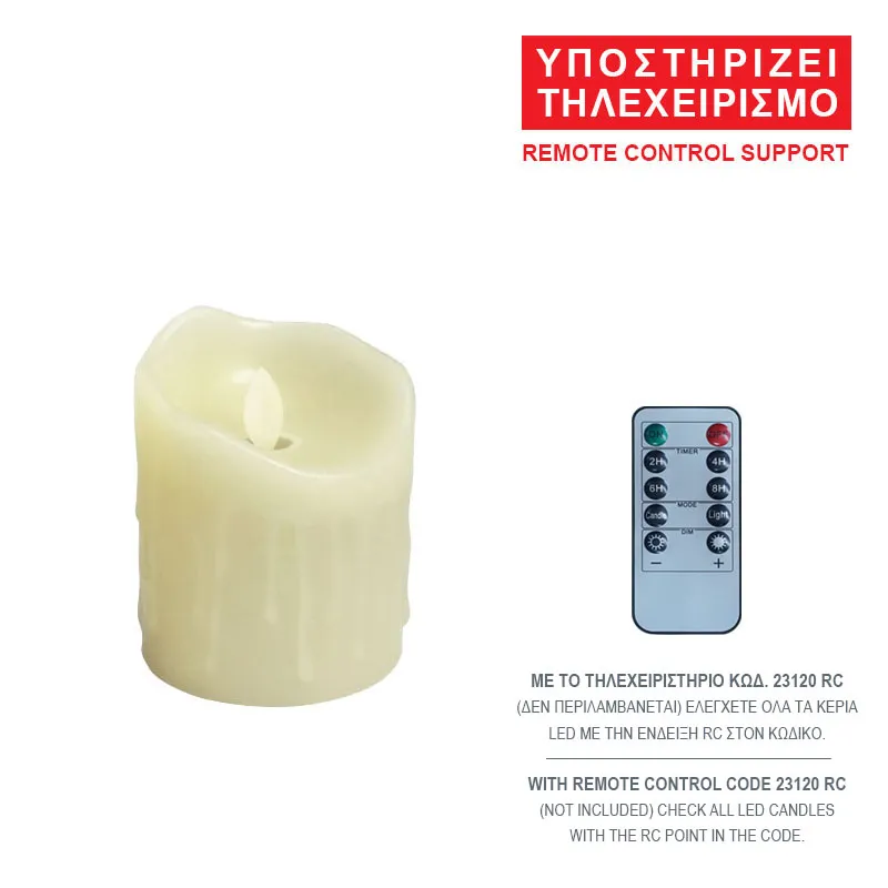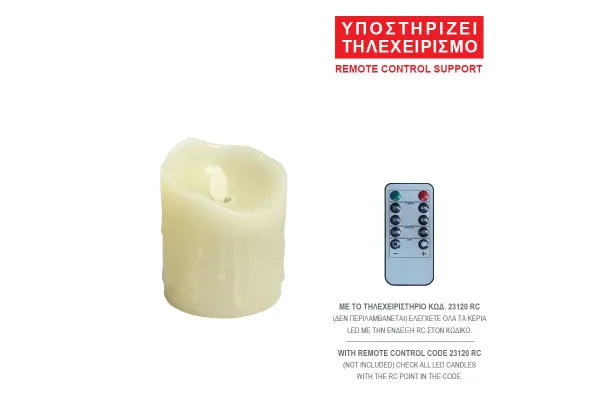 ΚΙΝΟΥΜΕΝΗ ΦΛΟΓΑ / MOVING FLAME ΚΕΡΙ LED ΕΚΡΟΥ ΜΕ ΣΤΑΛΕΣ & ΕΠΙΚΑΛΥΨΗ ΚΕΡΙΟΥ, ΤΗΛΕΧΕΙΡΙΣΜΟΣ - ΜΠΑΤΑΡΙΕΣ: 2x ΑΑ (500+ΩΡΕΣ ΜΕ ΑΛΚΑΛΙΚΕΣ - ΔΕΝ ΠΕΡΙΛΑΜΒΑΝΟΝΤΑΙ) - ΔΙΑΣΤ: Φ7.5x10cm - ΚΙΒ: 60 CREAM LED CANDLE WITH SPARKLES & WAX COATING, REMOTE CONTROL - BATTERIES: 2x ΑΑ (500+HOURS WITH ALKALINE - NOT INCLUDED) - DIM: Φ7.5x10cm - BOX: 60