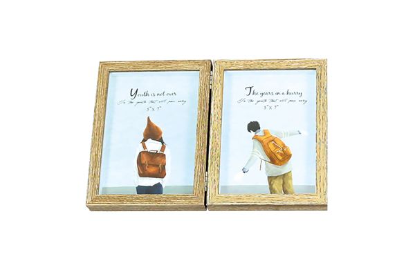 Polyester frame double, in colour of Maleli's wood. This frame will offer a modern, yet natural feel, ideal for photos or small artistic impressions, with the wood's natural designs combined with the purity and durability of polyester.