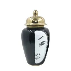 ΚΕΡΑΜΙΚΟ ΚΟΥΠ ΜΕΓΑΛΟ ΜΕ ΚΑΠΑΚΙ ΜΑΥΡΟ/ΧΡΥΣΟ ΑΣΙΑΤΙΚΟ ΤΕΤTΡΙΣ - Φ15x40cm 4/KIB