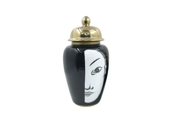 ΚΕΡΑΜΙΚΟ ΚΟΥΠ ΜΕΓΑΛΟ ΜΕ ΚΑΠΑΚΙ - ΣΧΕΔΙΟ: ΑΣΙΑΤΙΚΟ ΠΡΟΣΩΠΟ & ΣΤΥΛ - ΧΡΩΜΑ: ΧΡΥΣΟ/ΑΣΠΡΟ/ΜΑΥΡΟ - ΚΙΒΩΤΙΟ: 4 ΔΙΑΣΤΑΣΕΙΣ / DIMΕNSIONS: Φ22x43cm LARGE CERAMIC JAR WITH LID - DESIGN: ASIAN FACE & STYLE - COLOR: GOLD/WHITE/BLACK - ΒΟΧ: 4