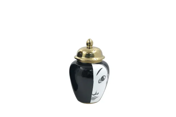 ΚΕΡΑΜΙΚΟ ΚΟΥΠ ΜΙΚΡΟ ΜΕ ΚΑΠΑΚΙ - ΣΧΕΔΙΟ: ΑΣΙΑΤΙΚΟ ΠΡΟΣΩΠΟ & ΣΤΥΛ - ΧΡΩΜΑ: ΧΡΥΣΟ/ΑΣΠΡΟ/ΜΑΥΡΟ - ΚΙΒΩΤΙΟ: 4 ΔΙΑΣΤΑΣΕΙΣ / DIMΕNSIONS: Φ19x30cm SMALL CERAMIC JAR WITH LID - DESIGN: ASIAN FACE & STYLE - COLOR: GOLD/WHITE/BLACK - ΒΟΧ: 4