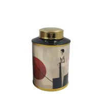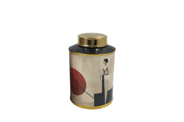 ΚΕΡΑΜΙΚΟ ΚΟΥΠ ΜΙΚΡΟ ΜΕ ΚΑΠΑΚΙ - ΣΧΕΔΙΟ: ΓΥΝΑΙΚΑ ΑΠΩ ΑΝΑΤΟΛΗΣ - ΧΡΩΜΑ: ΜΑΥΡΟ/ΧΡΥΣΟ/ΜΠΕΖ/ΚΟΚΚΙΝΟ - ΚΙΒΩΤΙΟ: 4 ΔΙΑΣΤΑΣΕΙΣ / DIMΕNSIONS: Φ16x26cm SMALL CERAMIC JAR WITH LID - DESIGN: FAR EASTERN WOMAN - COLOR: BLACK/GOLD/BEIGE/RED - ΒΟΧ: 4