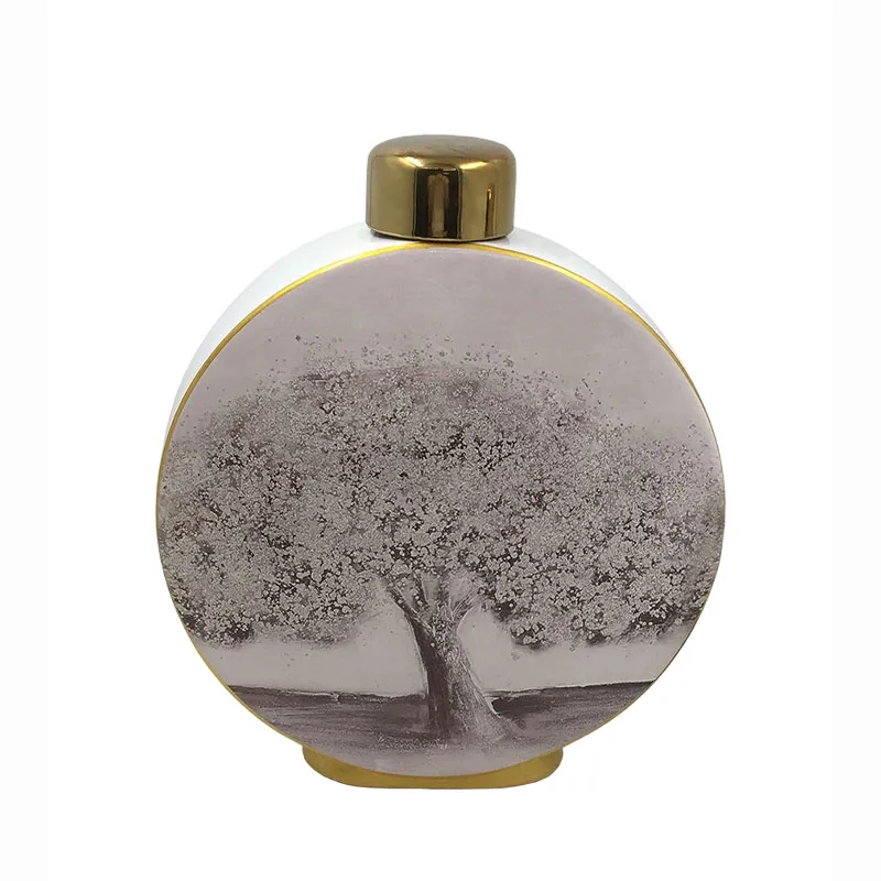 ΚΕΡΑΜΙΚΟ ΚΟΥΠ ΚΥΚΛΙΚΟ ΜΕΓΑΛΟ ΜΕ ΚΑΠΑΚΙ - ΣΧΕΔΙΟ: ΚΑΦΕ ΔΕΝΤΡΟ - ΧΡΩΜΑ: ΛΕΥΚΟ/ΧΡΥΣΟ/ΚΑΦΕ - ΚΙΒΩΤΙΟ: 4 ΔΙΑΣΤΑΣΕΙΣ / DIMΕNSIONS: 28x9x33cm LARGE CERAMIC ROUND JAR WITH LID - DESIGN: BROWN TREE - COLOR: WHITE/GOLD/BROWN - ΒΟΧ: 4