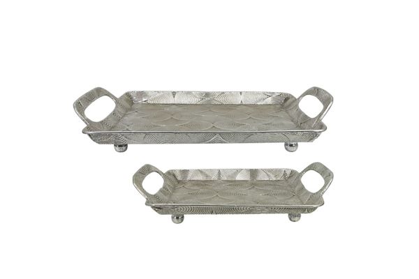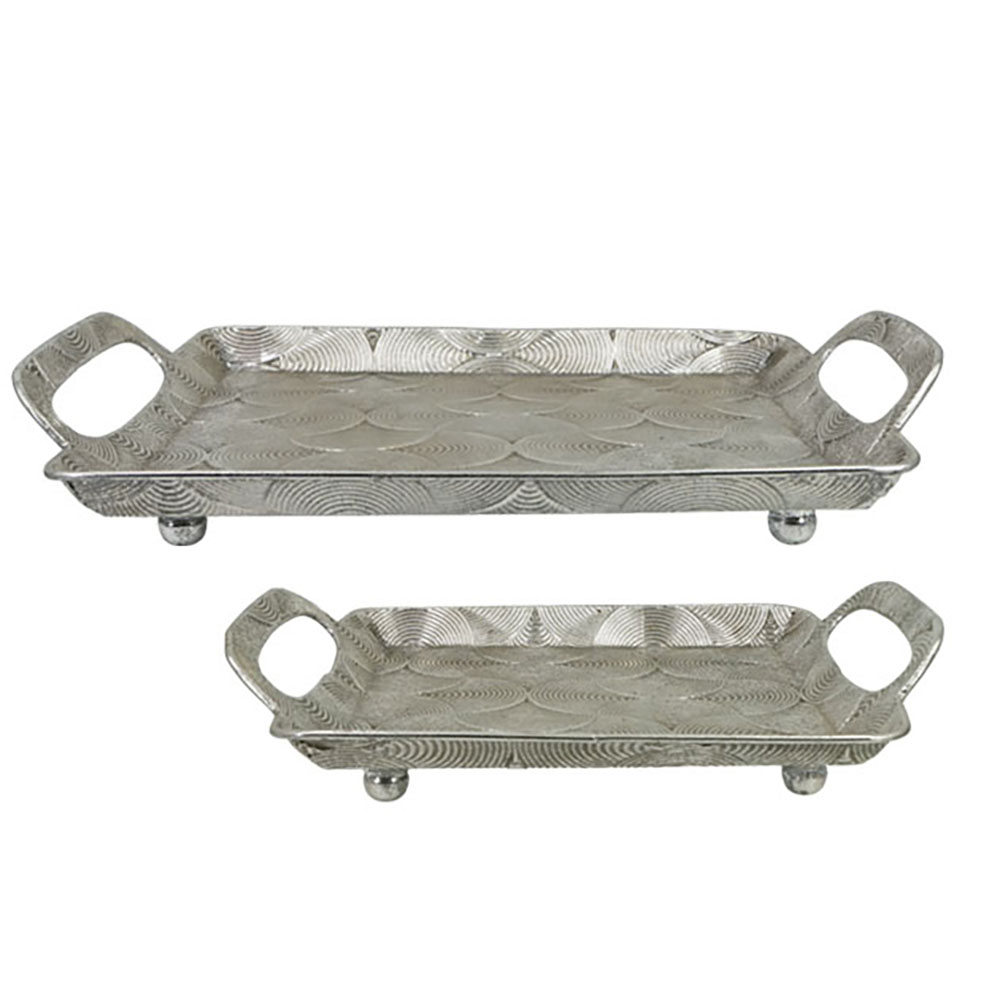Σετ Διακοσμητικών Δίσκων Μεταλ. Ασημί L:45.5x36.5x7, S:36x28.5x7cm Marhome 22408