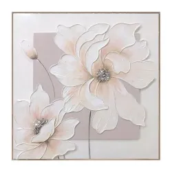 ΠΙΝΑΚΑΣ ΚΑΜΒΑΣ 2 ΑΝΘΗ & ΜΠΟΥΜΠΟΥΚΙΑ ΛΕΥΚΟ/ΚΑΦΕ ΣΕ ΚΟΡΝΙΖΑ - 3D ΣΤΟΙΧΕΙΑ - 80x80cm 6/KIB