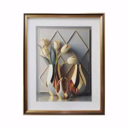 ΠΙΝΑΚΑΣ ΚΑΜΒΑΣ ΛΟΥΛΟΥΔΙ ΛΕΥΚΟ/ΓΚΡΙ ΣΕ ΚΟΡΝΙΖΑ - 3D ΣΤΟΙΧΕΙΑ - 60x60cm 10/KIB