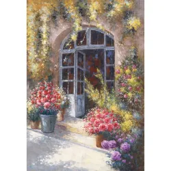 Πίνακας σε Καμβά Λουλούδια 80x120εκ. Είσοδος στην Κέρκυρα