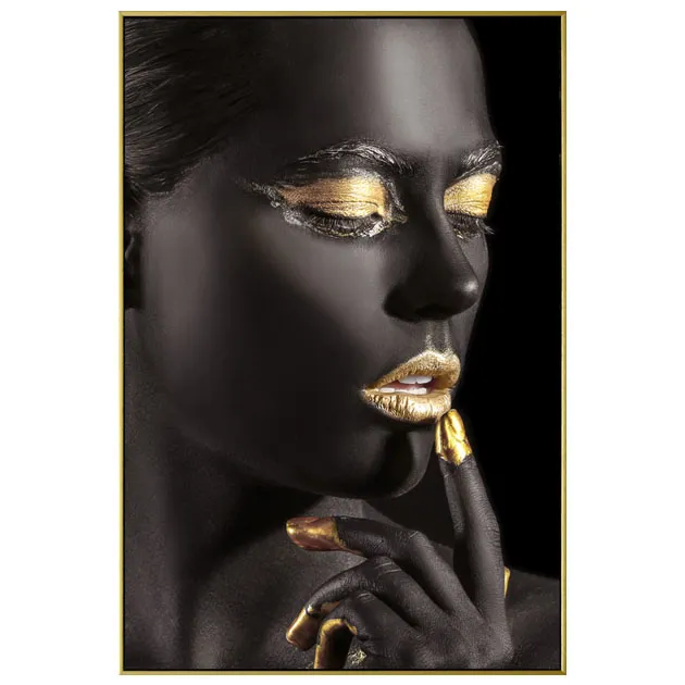 ΠΙΝΑΚΑΣ ΓΥΝΑΙΚΑ ΜΑΥΡΟ-ΧΡΥΣΟ ΜΕ 3D ΛΕΠΤΟΜΕΡΕΙΕΣ - ΨΗΦΙΑΚΗ ΕΚΤΥΠΩΣΗ ΣΕ ΚΟΡΝΙΖΑ 63x93x3.5cm 1/6ΚΙΒ