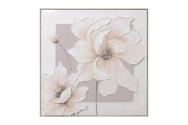 ΠΙΝΑΚΑΣ ΚΑΜΒΑΣ 2 ΑΝΘΗ & ΜΠΟΥΜΠΟΥΚΙΑ ΛΕΥΚΟ/ΚΑΦΕ ΣΕ ΚΟΡΝΙΖΑ - 3D ΣΤΟΙΧΕΙΑ - 80x80cm 6/KIB