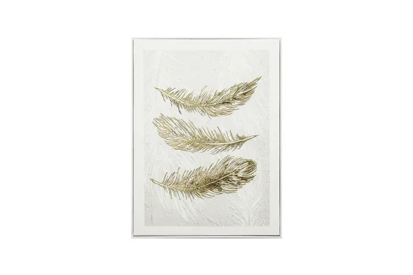 Πίνακας σε Καμβά 3 Φτερά 40x60x2.5εκ. Χρυσό - Λευκό Ανάγλυφο Εφέ