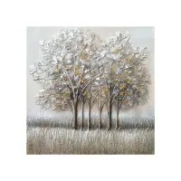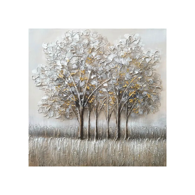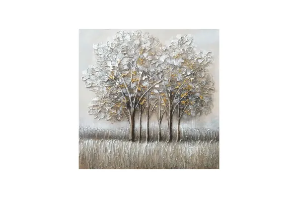 Πίνακας σε Καμβά 6 Δέντρα 60x60εκ. Γκρι - Χρυσά με 3D Στοιχεία