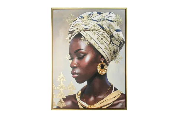 ΠΙΝΑΚΑΣ ΕΚΤΥΠΩΣΗ ΣΕ ΚΑΜΒΑ 3D ΣΤΟΙΧΕΙΑ - ΘΕΜΑ: ΑΦΡΙΚΑΝΑ ΓΚΡΙ/ΧΡΥΣΟ/ΚΑΦΕ - ΥΛΙΚΑ: ΚΑΜΒΑΣ, ΓΥΨΟΣ, MDF, PS - ΚΙΒΩΤΙΟ: 10 ΔΙΑΣΤΑΣΕΙΣ / DIMΕNSIONS: 60x80x3.8cm PRINTING ON CANVAS 3D ELEMENTS - THEME: AFRICAN WOMAN GREY/GOLD/BROWN - MATERIALS: CANVAS, PLASTER, MDF, PS - BOX: 10 ΜΕ ΚΟΡΝΙΖΑ / WITH FRAME
