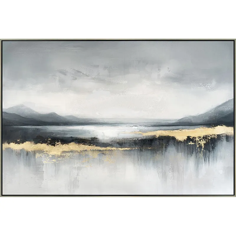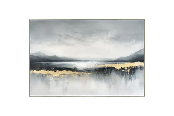 Πίνακας σε Καμβά Λίμνη + Βουνό 112.5x82.5x3.5εκ. Ασπρόμαυρο - Χρυσό