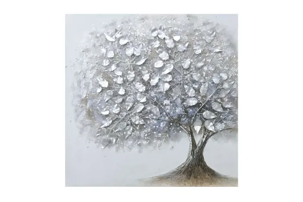 Πίνακας σε Καμβά Δέντρο 80x80εκ. Ασημί - Καφέ με 3D Στοιχεία