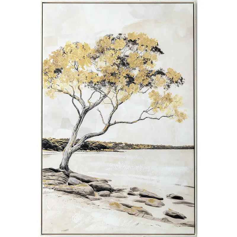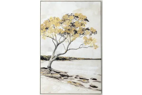 ΠΙΝΑΚΑΣ ΚΑΜΒΑΣ ΔΕΝΤΡΟ ΧΡΥΣΟ ΣΤΗΝ ΠΑΡΑΛΙΑ ΣΕ ΚΟΡΝΙΖΑ ΑΡΙΣΤΕΡΟ - 82.5x122.5x4.5cm 6/KIB