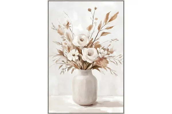 Πίνακας σε Καμβά 82.5x122.5x3.5εκ. Εκρού - Καφέ Βάζο με Λουλούδια