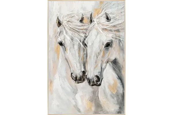 ΠΙΝΑΚΑΣ ΕΛΑΙΟΓΡΑΦΙΑ ΣΕ ΚΑΜΒΑ ME ΣΤΟΙΧΕΙΑ 3D - ΘΕΜΑ: 2 ΑΛΟΓΑ ΕΚΡΟΥ/ΧΡΥΣΟ - ΥΛΙΚΑ: ΞΥΛΟ, ΚΑΜΒΑΣ, ΠΛΑΙΣΙΟ PS - ΚΙΒΩΤΙΟ: 6 ΔΙΑΣΤΑΣΕΙΣ / DIMΕNSIONS: 102.5x152.5x3.5cm OIL PAINTING ON CANVAS WITH 3D ELEMENTS - THEME: 2 HORSES CREAM/GOLD - MATERIALS: WOOD, CANVAS, PS FRAME - BOX: 6 ΜΕ ΚΟΡΝΙΖΑ / WITH FRAME