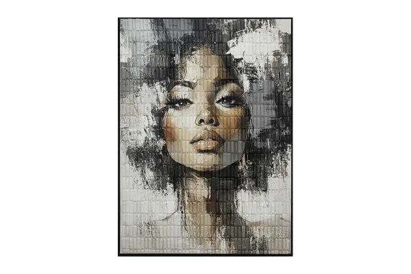 Πίνακας σε Καμβά Γυναίκα - Ηρεμία 60x80x3.5εκ. Ασπρόμαυρο - Χρυσό Ανάγλυφο Εφέ