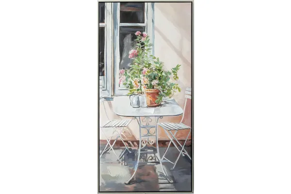ΠΙΝΑΚΑΣ ΕΚΤΥΠΩΣΗ ΣΕ ΚΑΜΒΑ (+50% ΖΩΓΡΑΦΙΚΗ) ΜΕ ΚΟΡΝΙΖΑ - ΘΕΜΑ: ΛΕΜΟΝΑΔΑ ΣΤΗΝ ΑΥΛΗ - ΔΙΑΣΤΑΣΕΙΣ: 52.5x102.5x4.5cm - ΥΛΙΚΑ: ΞΥΛΙΝΟ ΤΕΛΑΡΟ, ΚΑΜΒΑΣ - ΚΙΒΩΤΙΟ: 8 CANVAS PRINTING (+50% HAND PAINT) WITH FRAME - THEME: LEMONADE IN THE COURTYARD - DIMENSIONS: 52.5x102.5x4.5cm - MATERIALS: WOODEN FRAME, CANVAS - BOX: 8