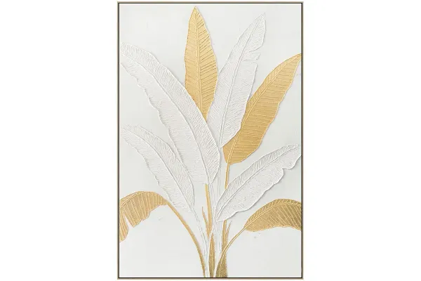 Πίνακας σε Καμβά Μπανανιά Λευκό - Χρυσό 82.5x122.5x3.5εκ. Ανάγλυφο Σχέδιο