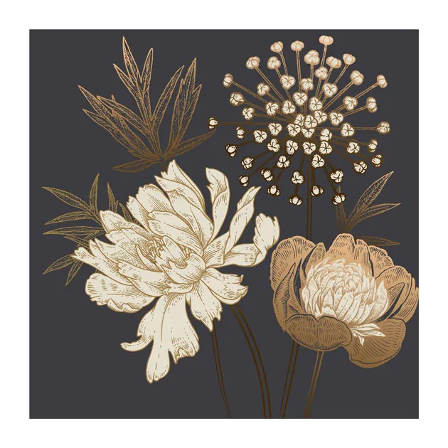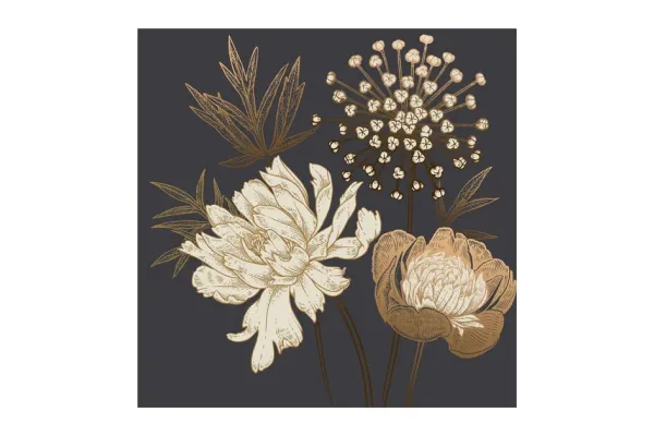 Πίνακας σε Καμβά Λουλούδια Νέον 80x80x2.8εκ. Μαύρο - Χρυσό