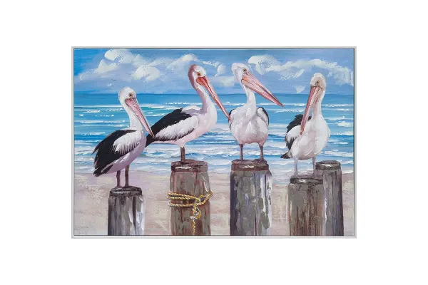 Πίνακας σε Καμβά 4 Πελεκάνοι 62x92εκ. σε Κάβους