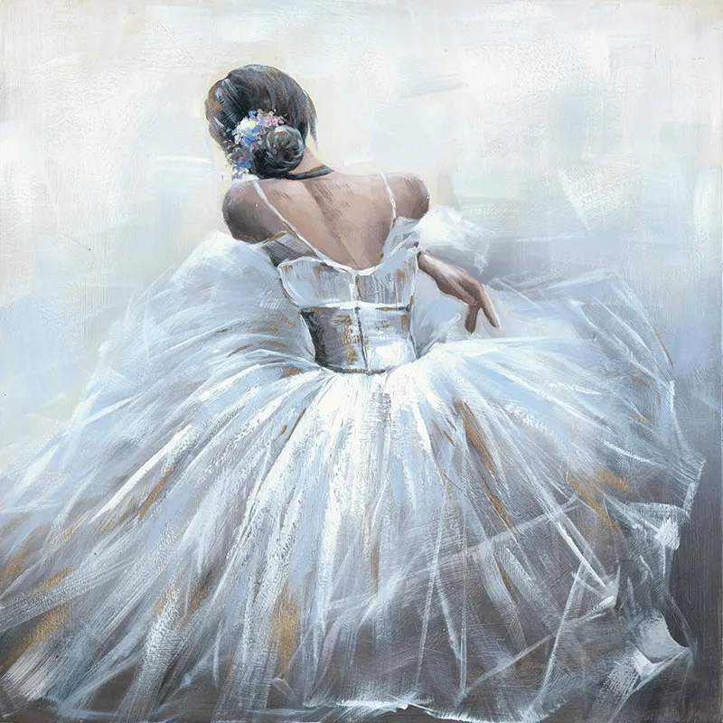 Πίνακας σε Καμβά Μπαλαρίνα 100x100εκ. Φόρεμα Λευκό