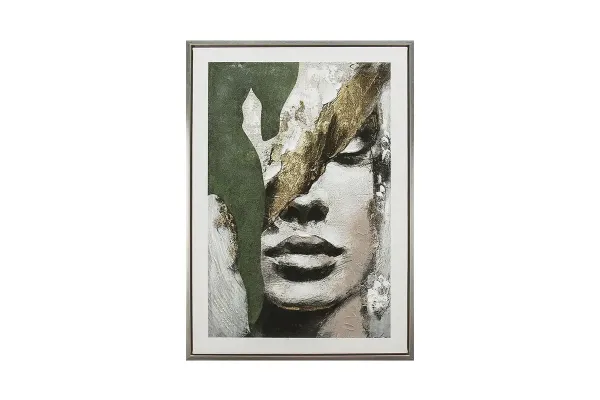 ΕΚΤΥΠΩΣΗ ΣΕ ΚΑΜΒΑ ΑΝΑΓΛΥΦΟ ΕΦΕ - ΘΕΜΑ: ΠΡΟΣΩΠΟ ΠΡΑΣΙΝΟ/ΧΡΥΣΟ/ΓΚΡΙ - ΥΛΙΚΑ: ΚΑΜΒΑΣ, ΓΥΨΟΣ, MDF, ΠΛΑΙΣΙΟ PS - ΚΙΒΩΤΙΟ: 10 ΔΙΑΣΤΑΣΕΙΣ / DIMΕNSIONS: 50x70x3.8cm CANVAS PRINTING EMBOSSED EFFECT - THEME: FACE GREEN/GOLD/GREY - MATERIALS: CANVAS, PLASTER, MDF, PS FRAME - BOX: 10 ΜΕ ΚΟΡΝΙΖΑ / WITH FRAME