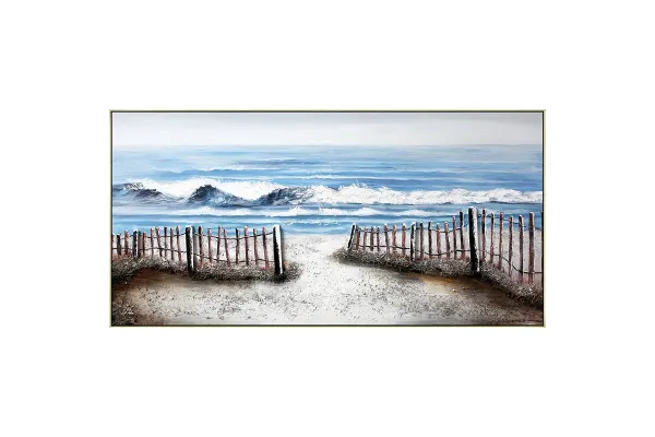 ΠΙΝΑΚΑΣ ΖΩΓΡΑΦΙΚΗΣ ΣΕ ΚΑΜΒΑ ΜΕ ΧΡΥΣΟ ΚΑΔΡΟ - ΘΕΜΑ: ΘΑΛΑΣΣΑ ΠΕΡΙΦΡΑΞΗ ΣΤΗΝ ΠΑΡΑΛΙΑ - ΔΙΑΣΤΑΣΕΙΣ: 140x70cm - ΥΛΙΚΑ: ΚΑΜΒΑΣ, ΞΥΛO, PS ΠΛΑΙΣΙΟ - ΚΙΒΩΤΙΟ: 6 OIL PAINTING ΟΝ CANVAS WITH A COLD FRAME - THEME: SEA FENCE ON THE BEACH - DIMENSIONS: 140x70cm - MATERIALS: CANVAS, WOOD, PS FRAME - BOX: 6