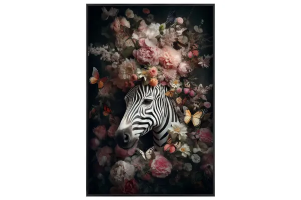 Πίνακας σε Καμβά 60x90x3.5εκ. Ζέβρα με Λουλούδια Παστέλ