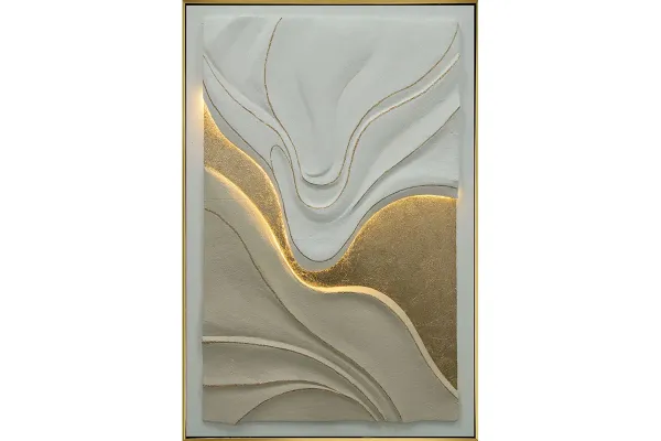 ΠΙΝΑΚΑΣ ΣΕ ΚΑΜΒΑ ΦΩΤΙΖΟΜΕΝΟΣ ΜΕ LED - ΘΕΜΑ: 3D ΑΦΗΡΗΜΕΝΟ ΕΚΡΟΥ-ΧΡΥΣΟ - ΥΛΙΚΑ: ΞΥΛΟ, ΚΑΜΒΑΣ, ΠΛΑΙΣΙΟ PS - ΚΙΒΩΤΙΟ: 4 ΔΙΑΣΤΑΣΕΙΣ / DIMΕNSIONS: 82.5x122.5x3.5cm PAINTING ON CANVAS WITH LED LIGHT - THEME: 3D ABSTRACT CREAM-GOLD - MATERIALS: WOOD, CANVAS, PS FRAME - BOX: 4 ΜΕ ΚΟΡΝΙΖΑ / WITH FRAME