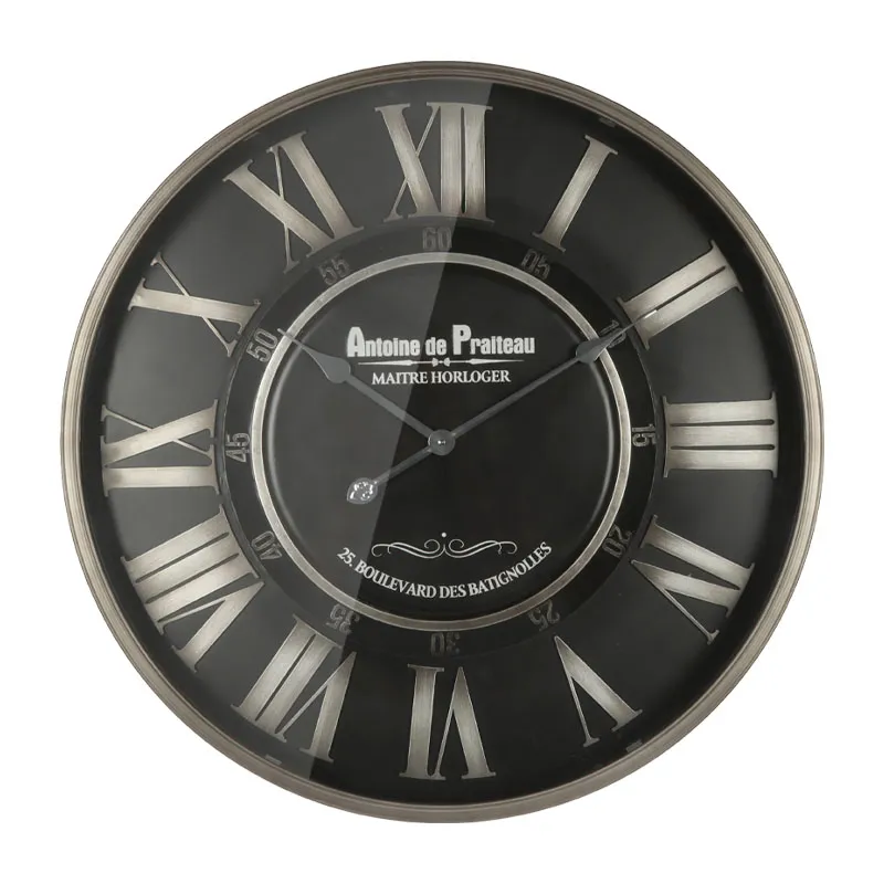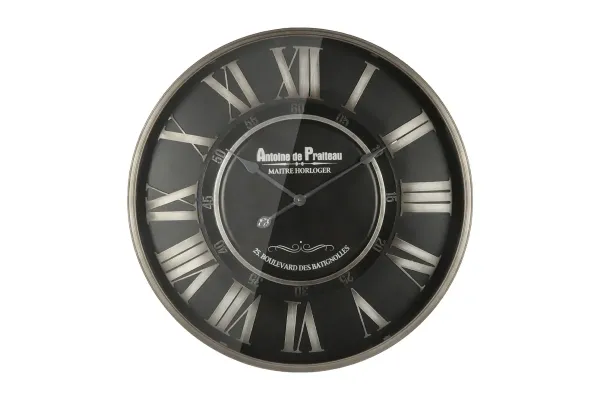 ΩΡΟΛΟΪ ΤΟΙΧΟΥ ΓΚΡΙ/ΜΑΥΡΟ ΜΕΤΑΛΛΙΚΟ ΣΤΡΟΓΓΥΛΟ ΜΕ ΓΥΑΛΙ & ΛΑΤΙΝΙΚΟΥΣ ΑΡΙΘΜΟΥΣ - Φ69x7.5cm 2/ΚΙΒ