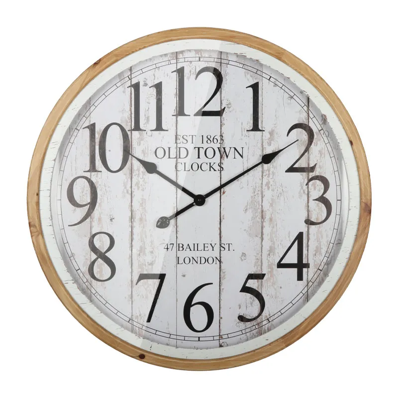 ΩΡΟΛΟΪ ΤΟΙΧΟΥ ΚΑΦΕ/ΛΕΥΚΟ ΕΦΕ ΞΥΛΟΥ ΣΤΡΟΓΓΥΛΟ ΜΕ ΓΥΑΛΙ & ΑΡΙΘΜΟΥΣ - Φ68x6.5cm 2/ΚΙΒ