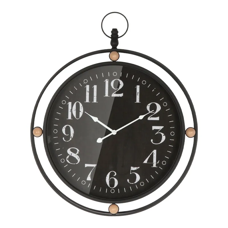 ΩΡΟΛΟΪ ΤΟΙΧΟΥ ΜΑΥΡΟ ΣΤΡΟΓΓΥΛΟ ΜΕ ΓΥΑΛΙ ΑΡΙΘΜΟΥΣ & ΚΡΙΚΟ - 59x72x6cm 2/ΚΙΒ