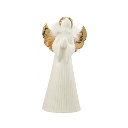 Άγγελος Κεραμικός Λευκός Με Πούπουλο 11.5x7.8x21.5εκ.