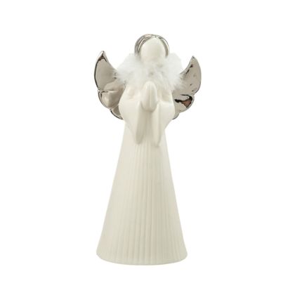 Άγγελος Κεραμικός Λευκός Με Πούπουλο 13x8.7x26εκ.