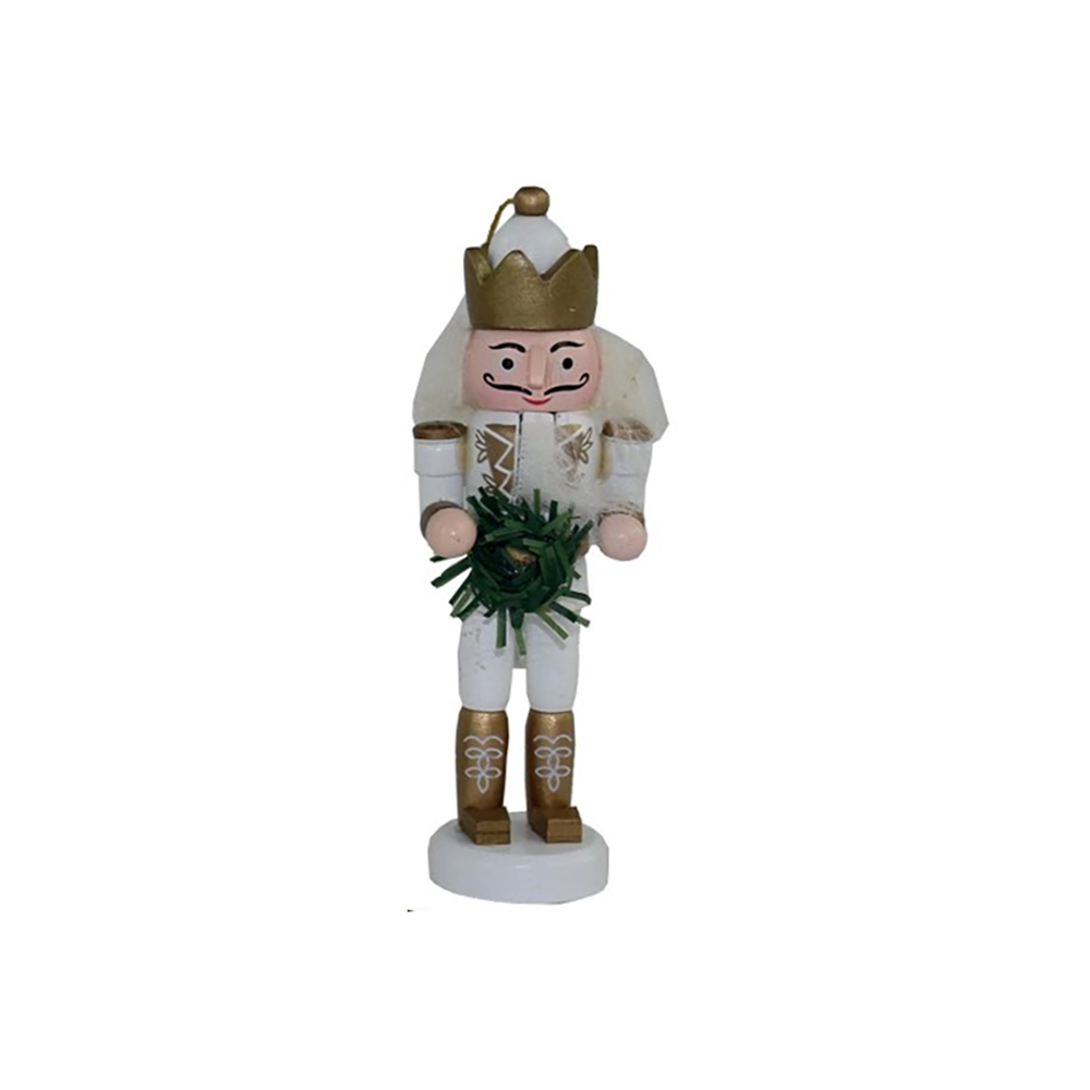 Ξύλινο διακοσμητίκο Καρυοθράυστης σε χρυσό και λευκό χρωματισμό με ύψος13cm της ελληνικής εταιρείας Μαλέλης .Μπορεί να χρησιμοποιηθεί σαν επιτραπέζιο διακοσμητικό και σαν στολίδι δέντρου .
