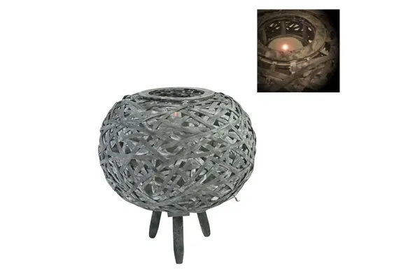 ΠΛΕΚΤΟ ΜΠΑΜΠΟΥ ΓΚΡΙ ΜΕ ΞΥΛΙΝΑ ΠΟΔΙΑ 14x26.5x16.5/30cm ΚΑΙ ΚΗΡΟΠΗΓΙΟ ΓΥΑΛΙNO 8x8cm