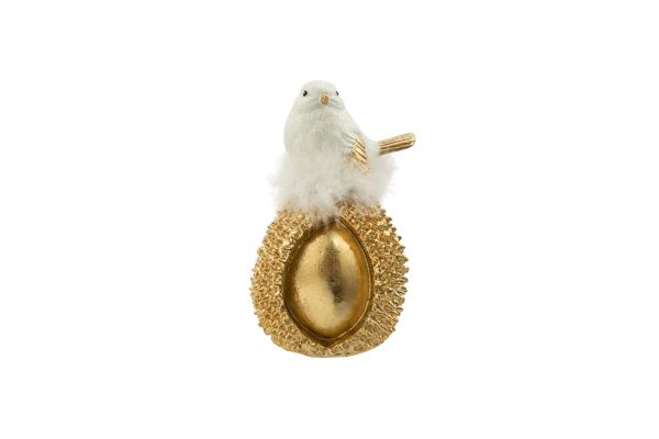 Πουλί σε Βελανίδι Πολυεστερικό Χρυσό - Λευκό 10x9x15.5εκ.