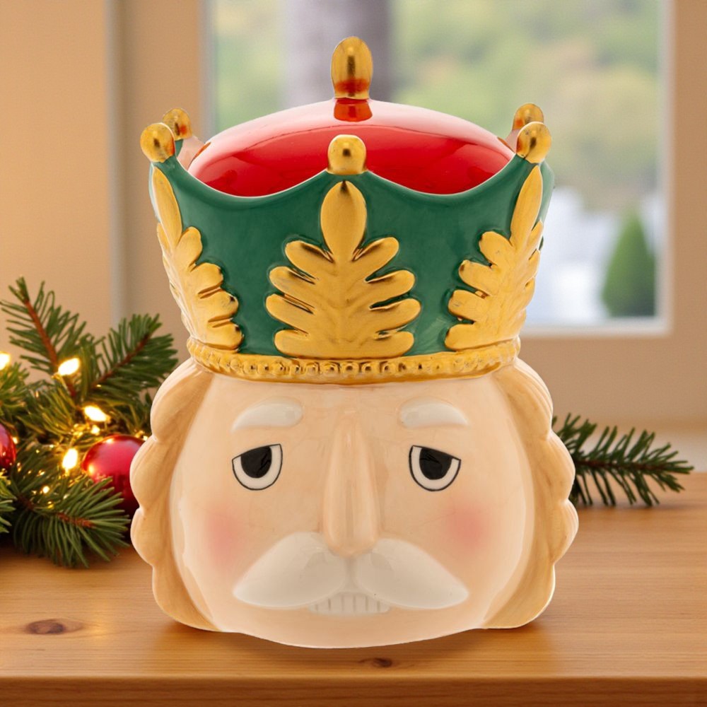 Φέρε στο σπίτι σου το παραμύθι των Χριστουγέννων με αυτή τη πολύχρωμη κεραμική μπισκοτιέρα Καρυοθραύστης Η λαμπερή της κορώνα σε χρυσό και πράσινο και οι ζεστές αποχρώσεις δημιουργούν μια ατμόσφαιρα χαράς και γιορτινής πολυτέλειας.
