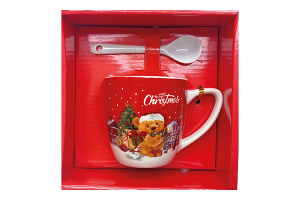 Σετ Δώρου Κούπα Πορσελάνης με κουταλάκι Κόκκινη 7.5×7.2 cm Μαλέλης