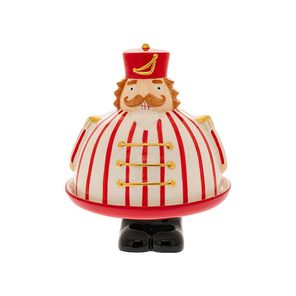Με σχέδιο Καρυοθραύστη, σε αποχρώσεις κόκκινου, χρυσού και λευκού, μετατρέπει κάθε γλυκό σε κομμάτι του χριστουγεννιάτικου παραμυθιού. Χειροποίητη κεραμική λεπτομέρεια, παιχνιδιάρικη μορφή και παραμυθένια αισθητική που θυμίζει τις παιδικές γιορτές. Ιδανική για cupcakes, μπισκότα ή γλυκές δημιουργίες, προσθέτει μαγεία στο σερβίρισμα και λάμψη στη διακόσμηση.