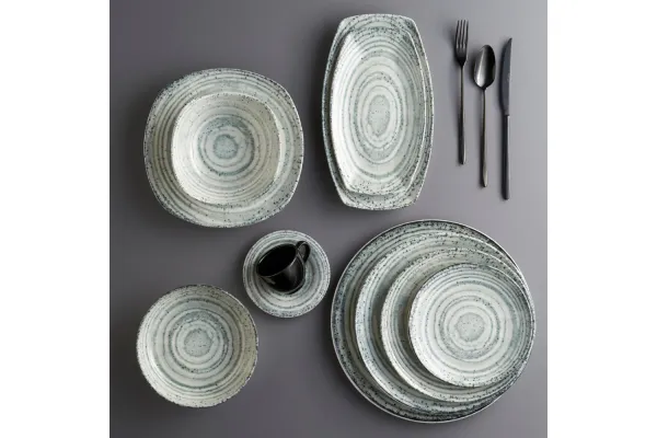 Κατασκευασμένο από υψηλής αντοχής Alumilite πορσελάνη και διαμορφωμένο με την τεχνική reactive glaze, δημιουργεί φυσικές αποχρώσεις και υφές που δεν επαναλαμβάνονται ποτέ. Κάθε πιάτο έχει τη δική του ιστορία, σαν χειροποίητο.