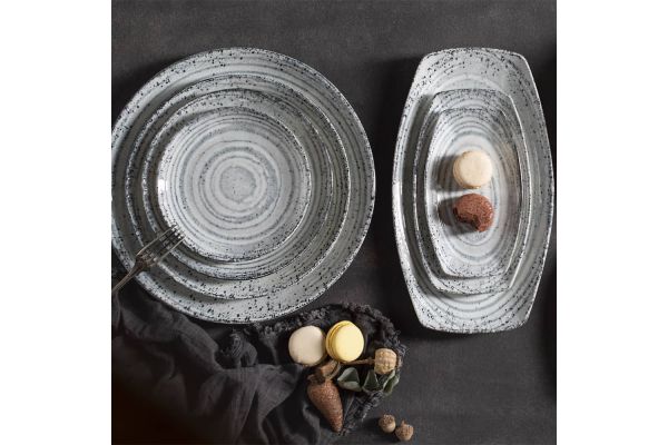 Το ρηχό πιάτο 25cm, από Alumilite πορσελάνη και διακοσμημένο με την τεχνική reactive glaze, δημιουργεί μοναδικά κυματιστά patterns και φυσικές αποχρώσεις που το κάνουν πραγματικά ξεχωριστό — κανένα κομμάτι δεν είναι ίδιο με το άλλο.