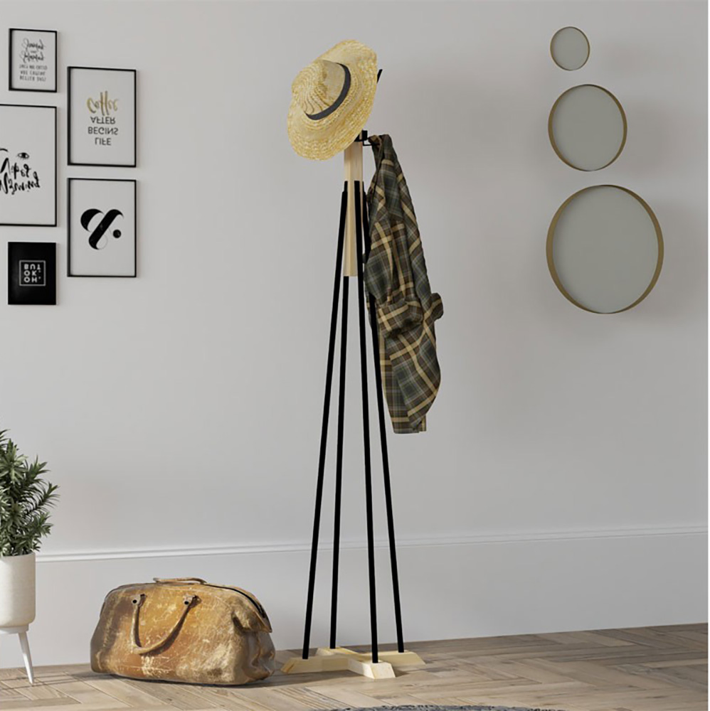 Modern floored monk in youthful design and style that will renew the entrance to your house. A necessary furniture for every house and office in the natural shade of wood to accommodate your bags and jackets. Base made of high quality wooden frame and metal and dimension strength in color: natural - black. Design with support on four legs and with positions for eight hangers for jackets and bags.