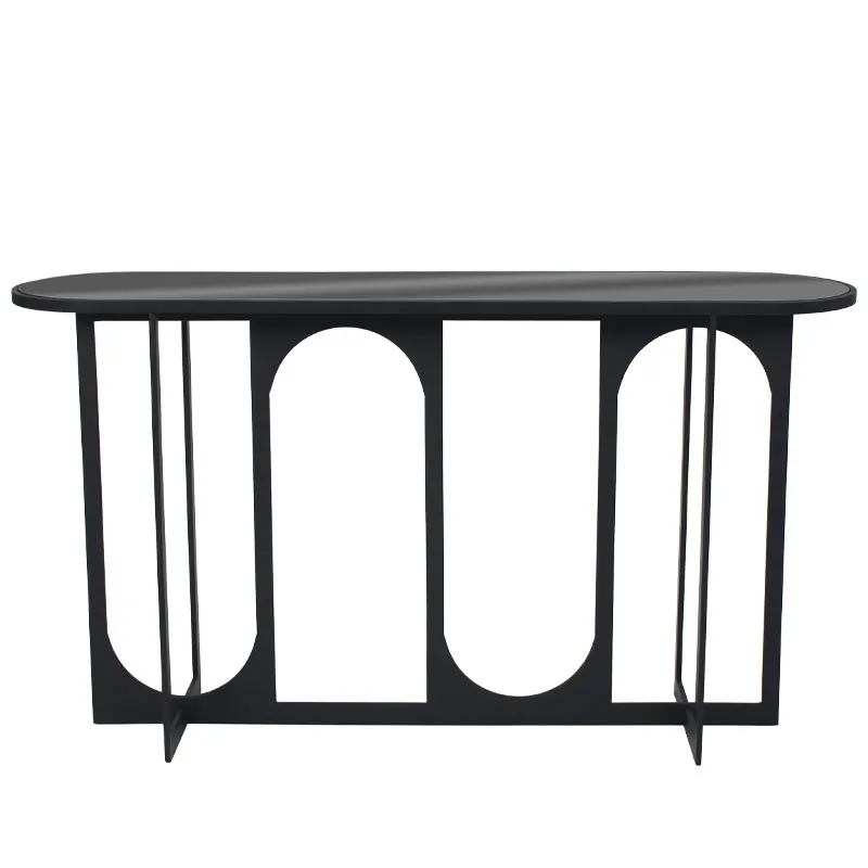 ΣΥΝΑΡΜΟΛΟΓΟΥΜΕΝΟ / ASSEMBLED ΔΙΑΚΟΣΜΗΤΙΚH ΚΟΝΣΟΛΑ - ΚΑΜΑΡΕΣ - ΧΡΩΜΑ: ΜΑΥΡΟ ΜΑΤ - ΥΛΙΚΑ: ΜΕΤΑΛΛΟ, ΓΥΑΛΙ - ΚΙΒΩΤΙΟ: 1 ΔΙΑΣΤΑΣΕΙΣ / DIMΕNSIONS: 140x34x77.5cm DECORATIVE CONSOLE - ARCHES - COLOR: MATTΕ BLACK - MATERIALS: METAL, GLASS - BOX: 1